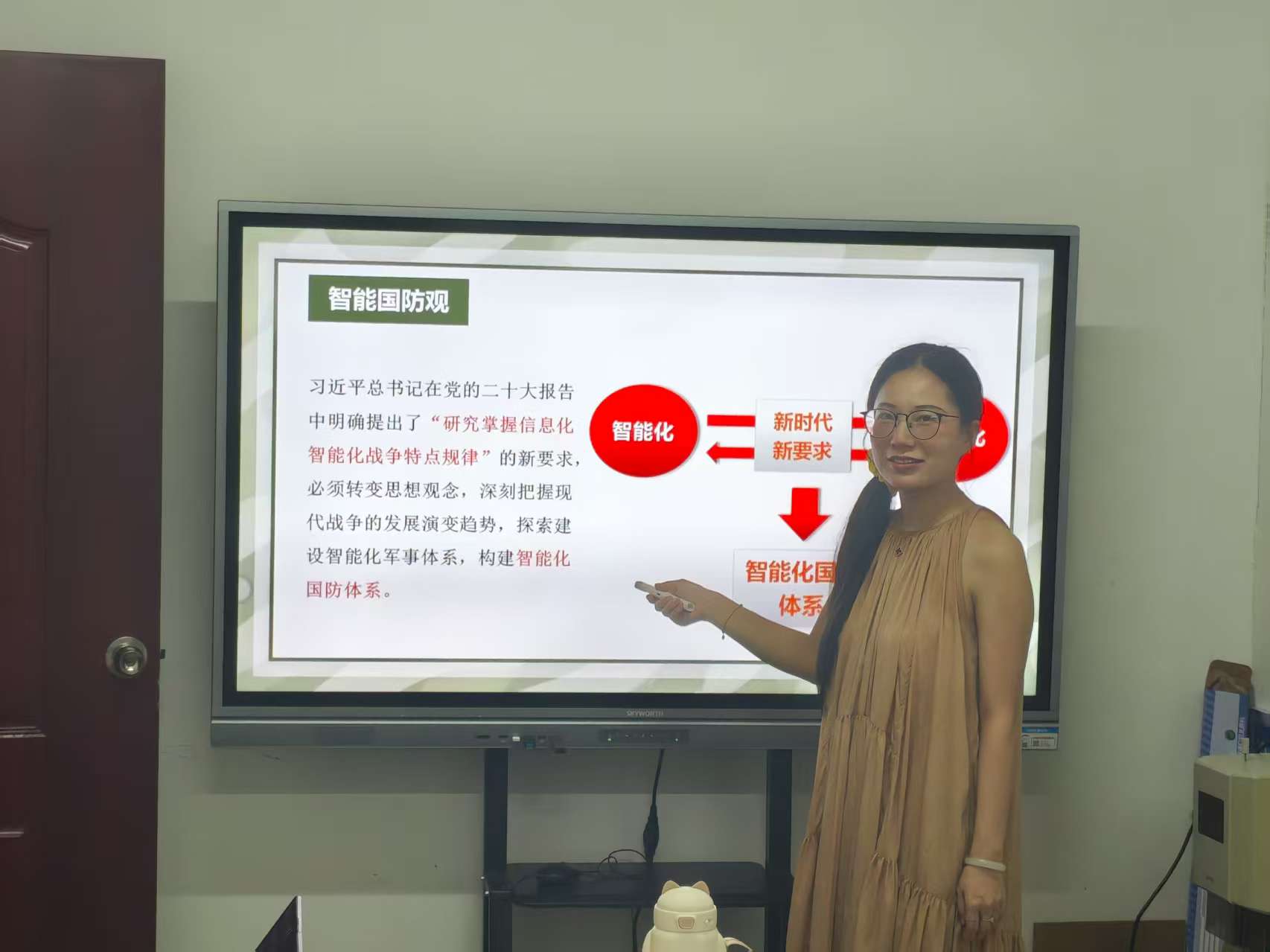潘申申以“中国国防”专题为主题梳理了中国国防的历史沿革、现行国防体制及国防政策,阐述了建设巩固国防和强大军队的时代意义。